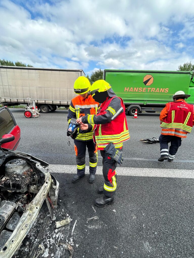 Drei Einsatzfahrzeuge und zehn Einsatzkräfte waren rund eine Stunde lang im Einsatz. Für die Dauer der Löscharbeiten mussten zwei der drei Fahrstreifen in Fahrtrichtung Bremen gesperrt werden.