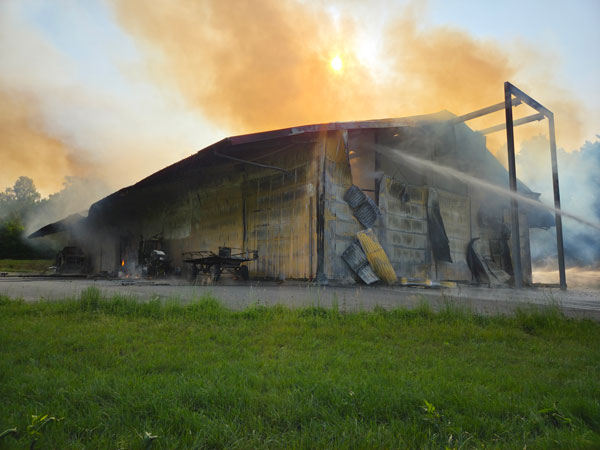 In dem Gebäude befanden sich große Mengen Holzhackschnitzel, Strohballen sowie landwirtschaftliche Maschinen. Durch die enorme Brandlast entwickelte sich das Feuer rasant. Eine weithin sichtbare Rauchwolke stieg über dem Brandort auf.
