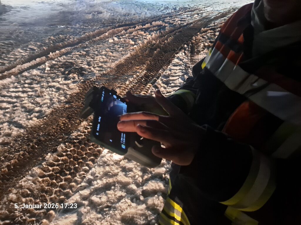 Die hereinbrechende Dunkelheit und weitere Schneefälle erschwerten den Einsatz, bei dem niemand verletzt, aber erheblicher Sachschaden abgewendet werden konnte.