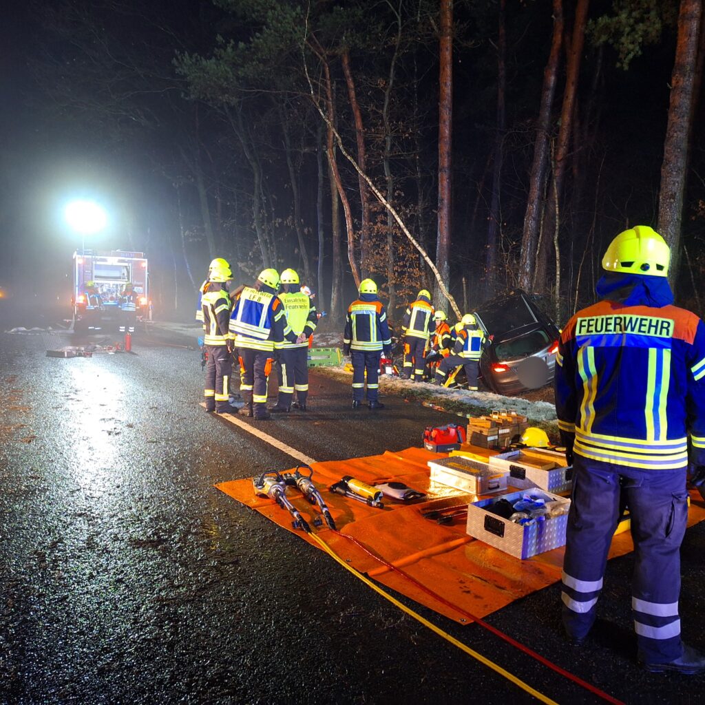 Die Feuerwehr Hellwege sperrte die Kreisstraße für die Dauer der Rettungs- und Aufräumarbeiten vollständig ab, stellte den Brandschutz sicher und leuchtete die Einsatzstelle aus. Insgesamt waren sieben Einsatzfahrzeuge mit 29 Einsatzkräften im Einsatz. Nach der Rettung wurde die Fahrzeugbatterie abgeklemmt. Zudem entfernte die Feuerwehr einen Baum, der infolge des Unfalls umzustürzen drohte.